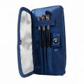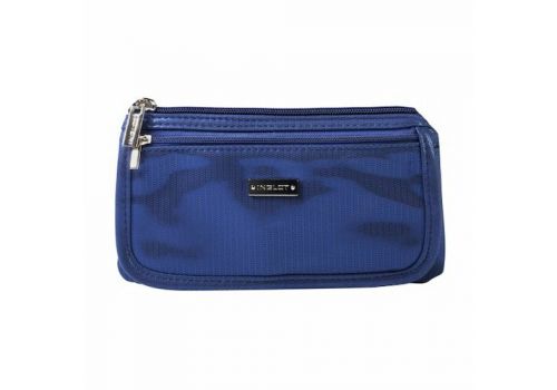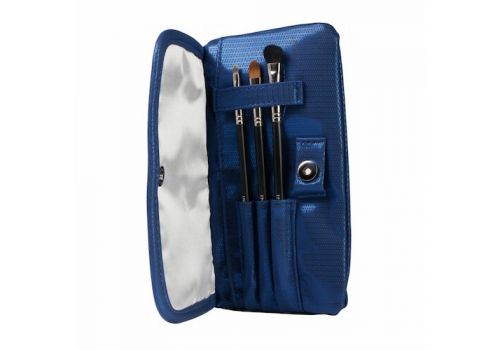 Geantă de machiaj, de culoarea indigo-albastru şi cu o căptușeală argintie. Se potrivește bine în orice poșetă. Două buzunare cu fermoar și două buzunare interioare mai mici vă vor permite să vă luați cu dvs. articolele de machiaj preferate. Iar trei buzunare pentru pensule mici vor găzdui instrumentele necesare pentru o corecție rapidă din mers.