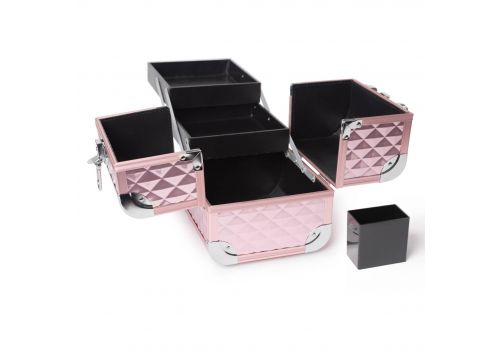 Caz cosmetic convenabil și funcțional. Are două rafturi extensibile și un recipient detașabil. Este perfect pentru depozitarea produselor cosmetice și a accesoriilor. Ideal atât pentru artiștii de machiaj, cât și pentru iubitorii de machiaj care apreciază ordinea și comoditatea. Are o cheie pentru blocarea accesului, care vă permite să vă protejați produsele în timpul transportului.